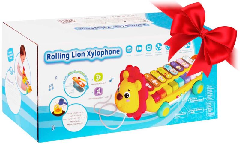 Oktatási játék Xilofon Lion modell: RK-740 Kényelmes és funkcionális: Robusztus és tartós, stabil, húzható zsinórral, interaktív panel beépített zongorával, világító elemek, használható zsinórra fűzött játékként vagy oktatási táblaként. Ajándéknak is tökéletes! A termék ideális az állatnevek és színek tanulására. Zenei panellel és világító billentyűkkel