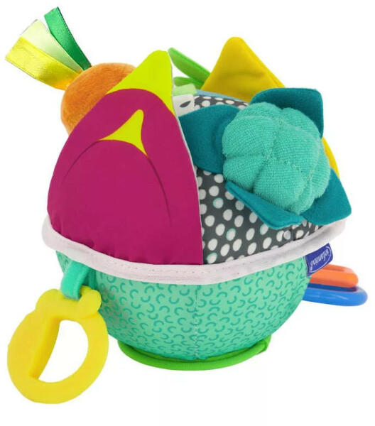 Puha tapintású készségfejlesztő játék, zörgő hangok, tükör, rágókák és színes szalagok stimulálják a látást és tapintást. Fejleszti a baba szem és kézkoordinációs képességét.