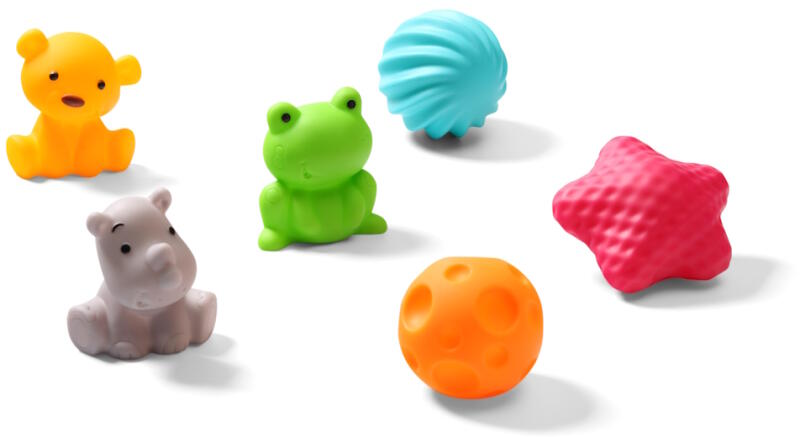 A szenzoros labdák a játék és az oktatási segédeszköz kombinációja. Segítenek fejleszteni a gyermek mozgáskoordinációját valamint serkentik a gyermek érzékszervi fejlődését. 6 darab (3 labda és 3 állatka) egy készletben. Minden egyes szenzoros játéknak más színe és anyagstruktúrája van, így stimulálják a gyermek összes érzékét. A fogzó baba rághatja a labdáka