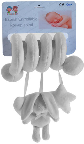 Gamberritos játékspirál plüss nyuszi szürke 10775 Ez a puha játékspirál szórakoztató tevékenységekkel ideális játszótárs babája számára. A különböző játékok csábításra hívják a babát, és több órányi játékidőt biztosítanak. Ez serkenti a baba fogási reflexét és hallásérzékelését. A játékspirál egyszerűen rögzíthető kiságyra, járókára vagy au