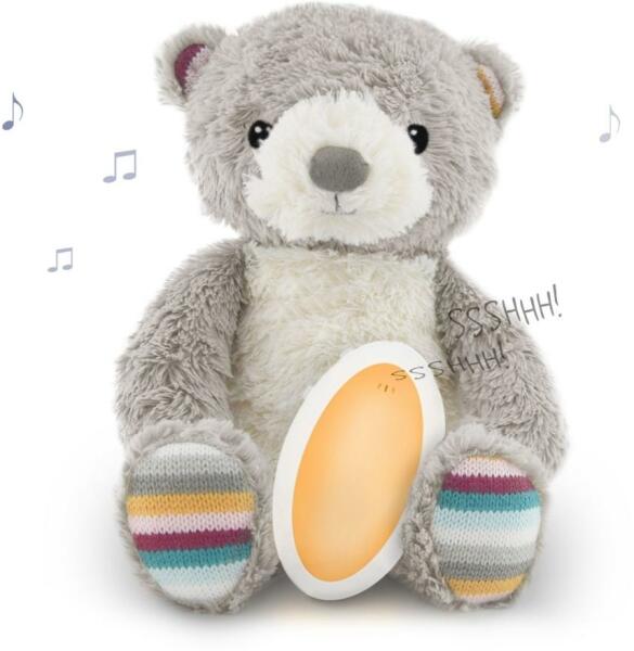 BRUNO mackó egy puha plüssjáték, mely megnyugtatja a kisbabát, mint egy édesanya. Jellemzők:- 7 különböző dallam: sss... sss, szívdobogás, fehér zaj, nyugtató dallam és 3 altatódal- sss... sss hang orvosilag elismert babanyugtató módszer- az éjjeli fény narancssárga fénye nyugtatólag hat a gyermekre- hangrögzítő: saját dal vagy mese felvételére alkalmas (30 mp)- sír