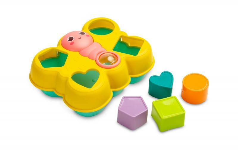 Nagyszerű logikai játék a legkisebbek számára. 4 színes formát tartalmaz, amelyek illeszkednek a fedél lyukaihoz. A pillangó mosolygós arca elfordítható, a farkán pedig egy átlátszó gömb található, színes, zörgő golyókkal. A játék 18 hónaposnál idősebb gyermekek számára alkalmas. A legfontosabb jellemzők: Segíti a gyermek koncentrációjának és figyelmének fejles