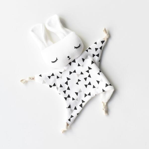 Ez az édes nyuszi ölelkezésre és megnyugtatásra készült. Nagy kontrasztú mintáinak, könnyen megmarkolható lábainak és puha anyagának köszönhetően a babád már az első naptól kezdve imádni fogja.