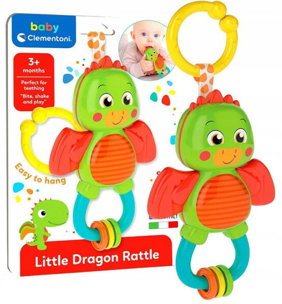 A Clementoni Baby - Kis Sárkány Bébi Csörgő Rágóka egy játék, amely kifejezetten a kisgyermekeknek lett tervezve. Ez a játék egy csörgő-rágóka kombináció, amelyet a baba kézbe tud venni és rágni tud rajta, amikor a fogai növekednek. A csörgő rész segít a baba hallás- és látási érzékelésének fejlesztésében, míg a rágóka rész enyhítheti a baba ínyének fájda