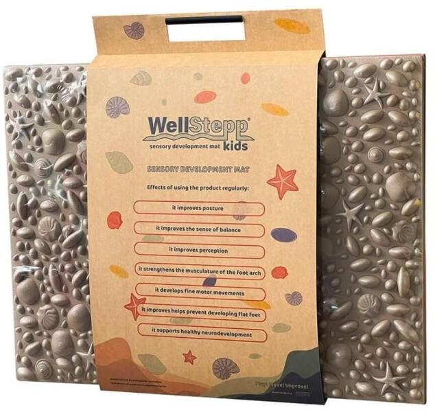 Mit kell tudni a játékról? WellStepp - Szenzoros fejlesztő szőnyeg Fejlesztő szőnyeg, amelynek rendszeres használatával elkerülhető a lúdtalp és az egyéb lábízületi panaszok kialakulása. Mérete 58x154 cm. A Wellstep ortopédiai szőnyegének felületét úgy alakították ki, hogy a tengerparton eltöltött vidám órákat idézze fel, miközben speciális kialakítása révén