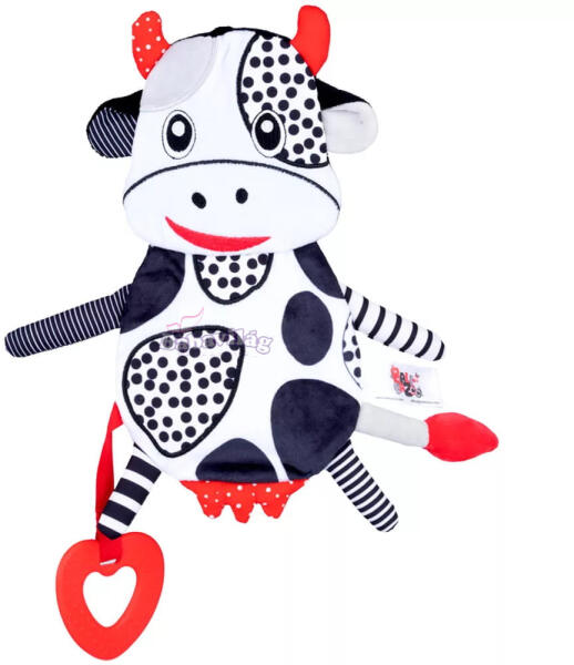 Az imádnivaló tehén kontrasztos színei, és a különböző textúrák serkentik a babák látását, tapintását és hallását. Az állatkához erősített rágóka segíti a fogzást. A pihe-puha kialakítás által teljesen biztonságos a legkisebbek számára is. Jellemzők: Újszülött kortól ajánlott Érzékszervi fejlesztés: A különböző textúrák és élénk színek serkentik