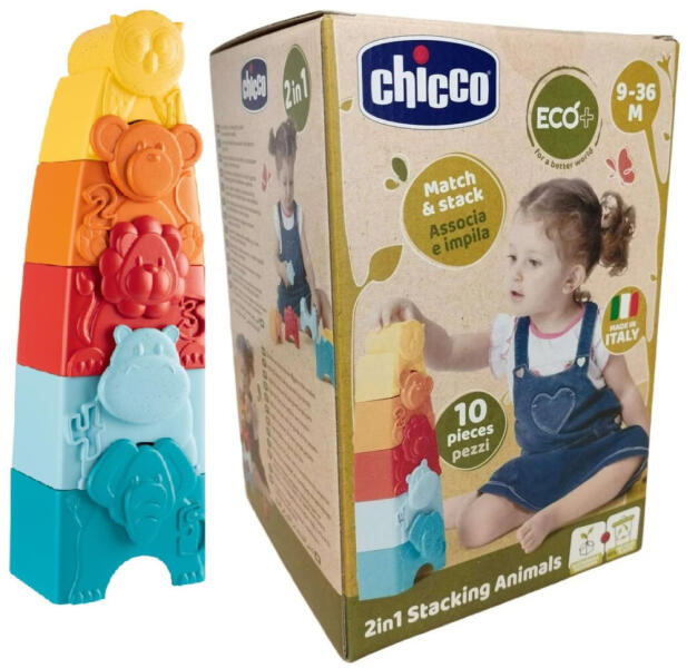 Chicco 2in1 Állatos torony építőjáték 2 az 1-ben állatok tornya, amelyet úgy építhetsz magasra, hogy az összes állatot egymásra rakod a legnagyobbtól a legkisebbig!Tartalma: 5 állattest és 5 állatfej. JÁTÉK-LEHETŐSÉGEK : 1/ Párosítsuk össze az állatok fejét és testét. 2/ Helyezzük be az állatok fejét a lyukakba. 3/ Az állatokat egymásra rakva hozzunk létre egy tor
