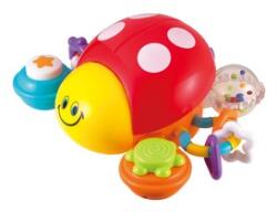 Tologatható katicabogár, ami mozgásra ingerli a picit! A Katicabogár készségfejlesztő bébijáték egy nagyobb méretű műanyag bogárka, aki színeivel rögtön leköti a babát. A katicabogár tologatás közben mókás hangokat ad ki magából, gombnyomásra a katicabogár dalra fakad, a baba együtt dúdolhatja vele a vidám dalocskákat. A szárnyak megnyomásával a katica fényeket
