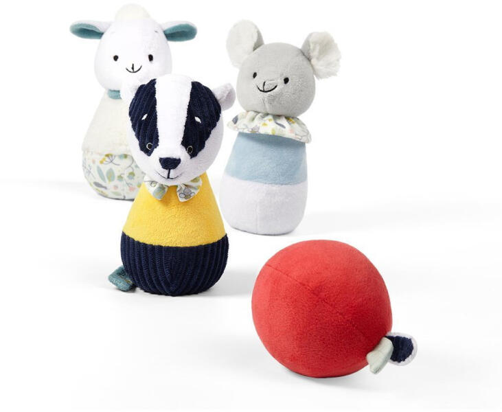BabyOno baba bowling szett - Edmund borz és barátai 1437 A vidám tekebábuk Edmund borz és barátai formájában megtanítják a gyermeket a térbeli gondolkodásra és fejlesztik a motoros készségeket. A készlet minden eleme lehet külön játék – csörgő, csengő, sípoló, susogó vagy bújós játék. A BabyOno baba bowling szett a "Play More" kollekció része. A kollekció mögöt