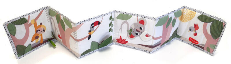 A Tiny Love Kétoldalas első könyvecském - BOHO CHIC kétféle pozícióban használható játék : a csecsemő mellé állítva - kiságyban vagy babakocsiban - nézegetheti a figurákat, ismerkedhet a színekkel a kicsi, a nagyobbak - hason fekve vagy ülve - már meg is foghatják a különböző textúrájú részleteket. A könyvecske egyik oldala színes, kedves állatokkal és 3 dimenzi