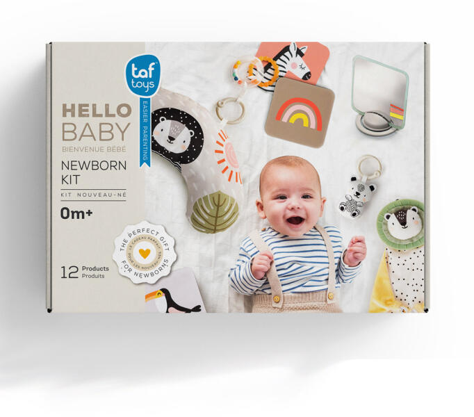 Újszülött készletünket kifejezetten arra tervezték, hogy a szülők rendelkezésére álljanak a legszükségesebb fejlesztő és nyugtató játékok, amelyek biztosítják, hogy a baba minden szükséges támogatást megkapjon. A készlet 12 kötelező fejlesztő terméket tartalmaz az újszülöttek számára: bababiztos tükör, oroszlános szundikendő, pocakpárna, csörgős gyűrű, or