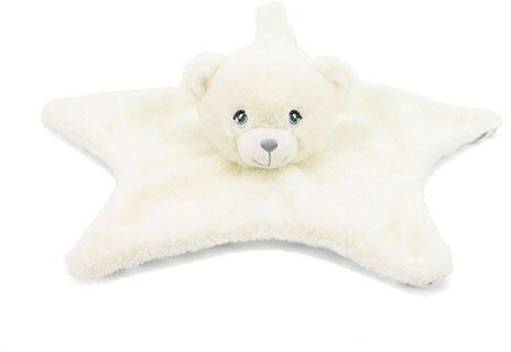 Kedves bébi plüss játék, Keeleco bébi plüss maci fehér-szürke nyunyakendő 32cm. Ez a termék 100% újrahasznosított poliészter (PET) anyagból készült. Óvd a környezeted!