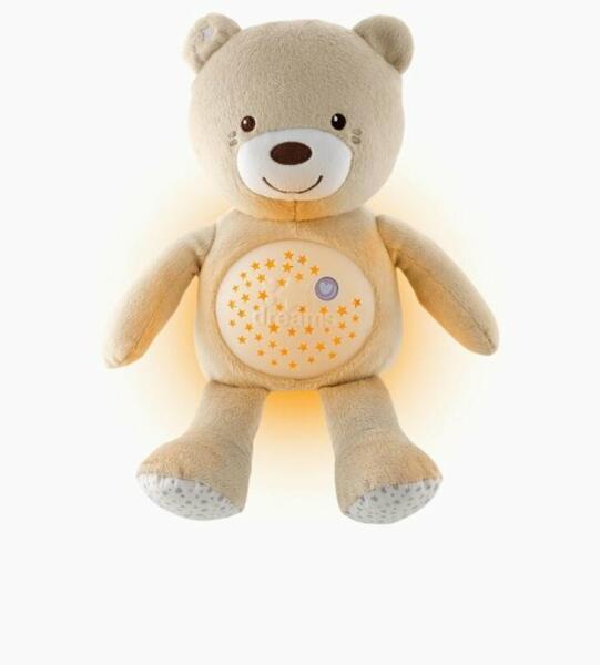 A Baby Bear First Dreams plüss maci projektorral a legjobb barátja lesz a kisbabádnak nappal és az elalvás során is. A Baby Bear egy olyan játék, amely ötvözi a puha plüsst, a finom éjszakai fényt a projekcióval és a relaxáló dallamokat. A fény használható az éjszakai égbolt vetítéseként, de éjszakai lámpaként is. Így a kisbaba nem fog félni az elalvástól, de a maci