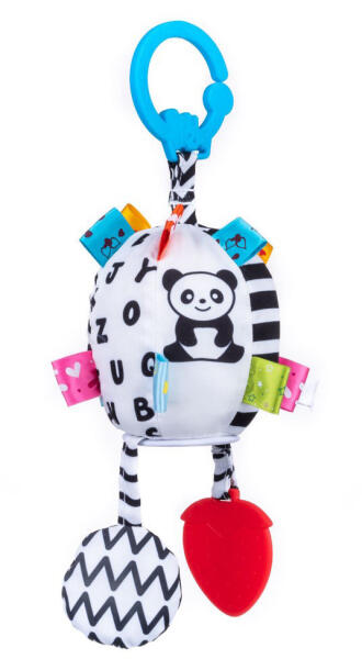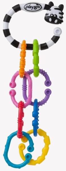 Mit kell tudni a játékról? Babakocsira akasztható lánc Praktikus babakocsi-lánc, mely zuhanyfüggöny karikákra hasonlító láncszemekből áll. A láncszemeket a fekete-fehér csíkos zebra karikára is rakhatjuk, és egymásba is fűzhetjük a szemeket. A legkisebbek a különböző tapintású felületekkel, és az élénk színekkel ismerkedhetnek meg, és a kis fogacskák kibújásako