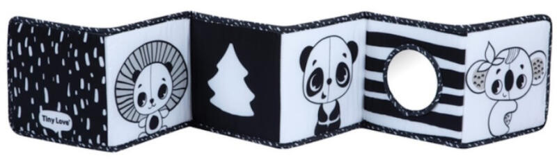 A Tiny Love Kétoldalas első könyvecském - Black and White könyv támogatja a baba fejlődését. A könyv kontrasztos, fekete-fehér oldalának kialakítása felgyorsítja a kisebb babák vizuális fejlődés ét, míg a másik oldalon látható nyugtató színű, aranyos figurák sok-sok örömet okoznak a nagyobb babák számára is. A könyv könnyen összehajtható, kis helyen is elfér,