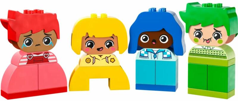 A LEGO DUPLO érzések és érzelmek készlete a legkisebb korosztályt célozza meg, hiszen elemeinek nagy méretéből adódóan már 18 hónapos kortól használható. A szettben 4 db, 12 cm-es figura található, melyek mindegyike más-más érzelmeket mutat. Továbbá minden baba arca két oldalú, így összesen 8 érzés mimikáját figyelhetjük meg. A készlet kiválóan mutatja be az emb