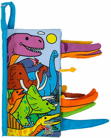 Kedves bébi játék, állatos textil bébi könyv dínó 22*12cm.