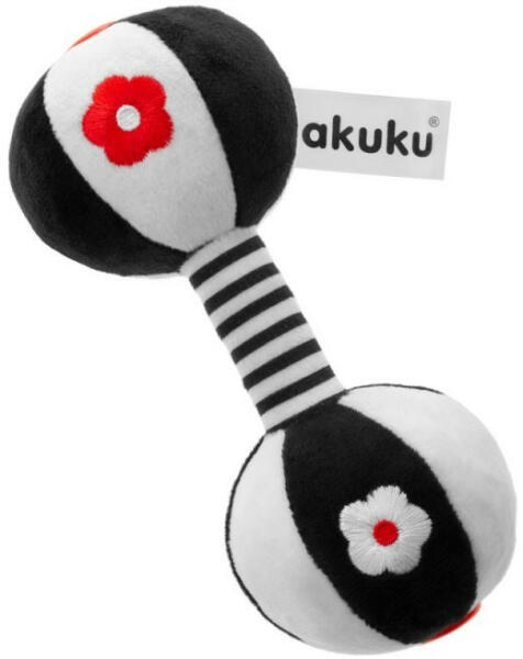 A súlyzó alakú, puha érzékszervi kontrasztjáték a babák kedvenc játéka lesz. Kellemes plüss anyagból készült, amely nem irritálja a baba érzékeny bőrét. Az első napoktól kezdve segíti a baba fejlődését. A játék a speciálisan használt színeknek köszönhetően, amelyeket a gyermek a születésétől kezdve lát, stimulálja a látást. Tökéletesen stimulálja a gyerm