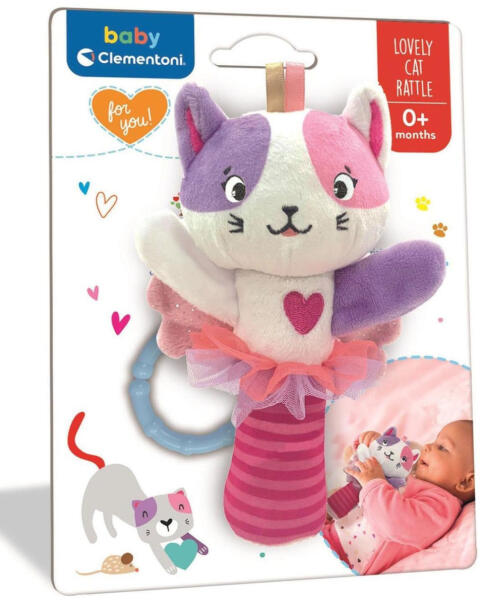 Clementoni Baby plüss cicás csörgő Cuki kis plüss cica lesz segítségedre kisbabád megnyugtatásában, miközben számára egy praktikus és izgalmas új játékot biztosítasz. Lágy színeivel színeivel, puha anyagával a Clementoni Baby plüss cicás csörgő hívogatóan hat a kicsik érzékszerveire. Különféle textúrájú anyagokból áll, ezáltal is segítve a baba fejlődését