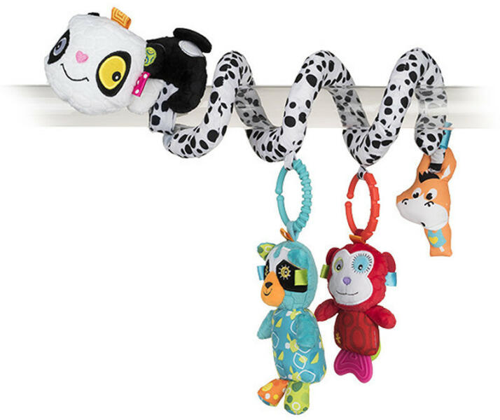 Kiváló minőségű anyagokból készült termék. Különleges formája segíti a megfelelő fejlődést és a játékkal könnyen megtanulhatja a gyermek a formák világát. Segíti a babát a szellemi és fizikai mozgékonyság fejlesztésében. A vidám színek játékra ösztönzik a gyermeket. Újszülött kortól ajánlott. A spirál játék könnyen rögzíthető a legtöbb kiságyra, ba