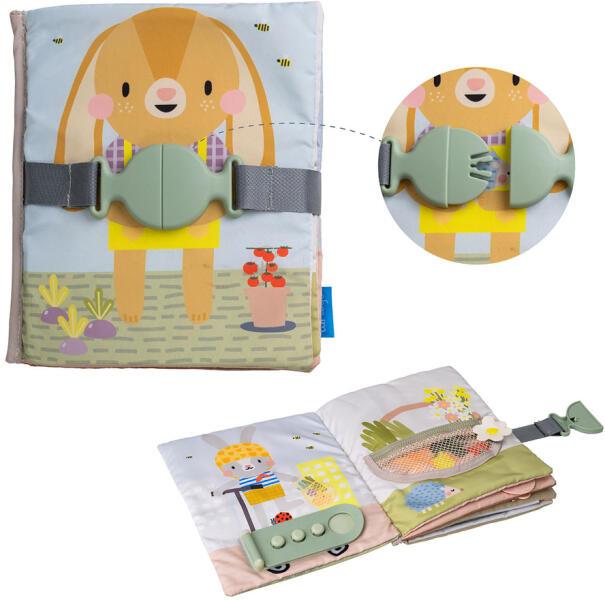 Textil foglalkoztató könyv számos nagy méretű, a baba számára is könnyen megfogható nyitható és zárható dologgal. A játék célja a szórakoztatáson felül a finommotorika, a kézügyesség, a problémamegoldó képesség és a szem-kéz koordináció fejlesztése. Egyedülálló és lebilincselő matatókönyv 18 hónapos és annál idősebb kisgyermekek számára. A 12 tevékenys
