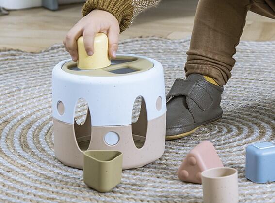 A Dantoy TINY BIO bioműanyag formabedobó játéka visszafogott, természetes színekben készül, kizárólag bioműanyagból. A játékkal és kis kreativitással számtalan készség fejleszthető (finommotorika, szín- formafelismerés, beszédkészség stb. ) A készlet 7 részből áll. Mosogatógépben moshatóak 10 hónapos kortól ajánlott Bioalapú műanyagból készült játékok Nem