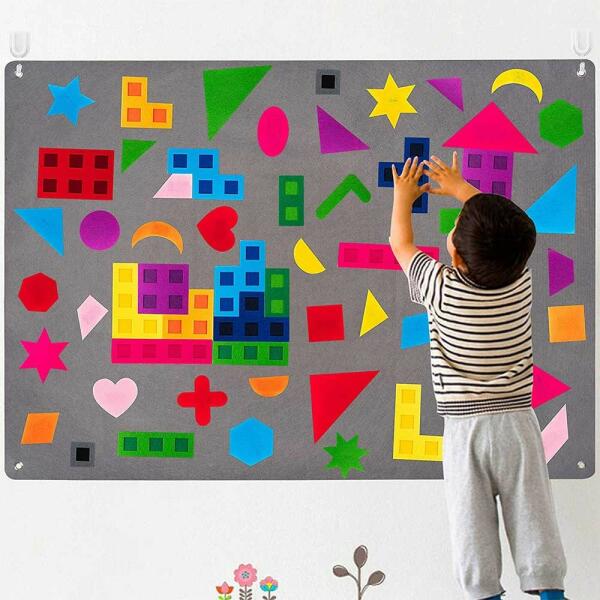 A Falra akasztható Interaktív filc építőjáték egy erős, vastag filc anyagból készült tábla, amely rengeteg alakzatot és formát tartalmaz. A játék fejleszti a gyerekek kreativitását, memóriáját, koncentrációs képességét, térlátását és finommotorikus készségeit. Tökéletes ajándék minden gyermek számára, akár 2 éves kortól iskolás korig. Ez a hatalmas méret