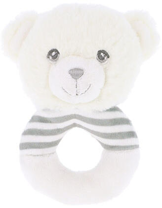 Kedves bébi plüss, Keeleco bébi plüss maci fehér-szürke karika csörgő 14cm. Ez a termék 100% újrahasznosított poliészter (PET) anyagból készült. Óvd a környezeted!