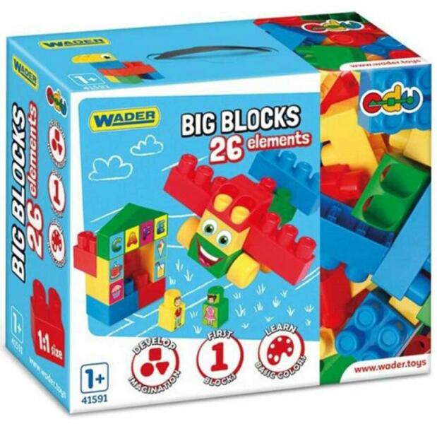 Nagy építőkocka szett kék elemekkel 26db-os - Wader Hivatalos magyarországi forgalmazótól. Leírás: Ismerd meg a Wader Big Blocks 26 darabos nagy építőkocka szettjét, ami kék, piros és sárga darabokkal várja, hogy gyermeked kreativitása szárnyra keljen! Ezek a nagy, kézreálló kockák kifejezetten a kisgyermekes családok számára lettek kialakítva, hogy a legkisebbek is bizt