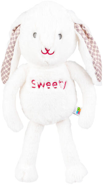 A puha aranyos kisállat kifejezetten ölelgetésre lett tervezve. Sweety a nyuszi hosszú fülekkel és puha szőrrel rendelkezik, amelynek simogatása ösztönöz. A fülek belső része színes anyaggal van díszítve. Az ölelgetős játék kellemesebbé teszi az alvást és különböző játékokban is elkísérheti a gyerekeket. A termék születéstől ajánlott. Mérete: 38x19x10 cm