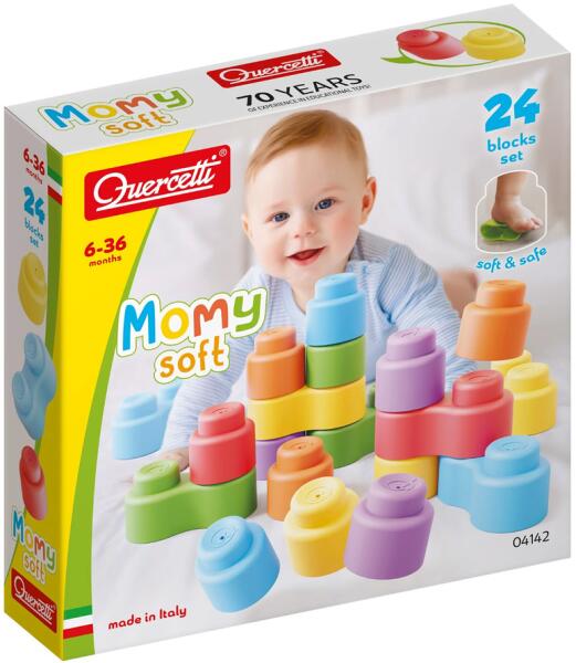 Quercetti: Momy Soft 24 db-os puha építőkocka szett Hivatalos magyarországi forgalmazótól. Leírás: A Quercetti Momy Soft 24 db-os puha építőkocka szett egy kiváló választás a kisgyermekek számára, akik szeretnek építkezni és felfedezni. Ez a szett még több lehetőséget kínál az építéshez és a kreatív játékhoz. A szett tartalmaz 24 darab különböző színű és for