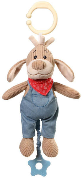 A kicsi növekszik, és lelkesen felfedez mindent, ami körülötte van. Egy zenedobozzal és fogazóval ellátott játék biztosítja számára azt a fejlődési serkentést, amelyre minden nap szüksége van. Ez egy puha kordbársonyból készült kabala farmer rövidnadrágban és puha anyagból készült sálban. A különböző textúrájú anyagok felkeltik a baba figyelmét. A játék gyeng