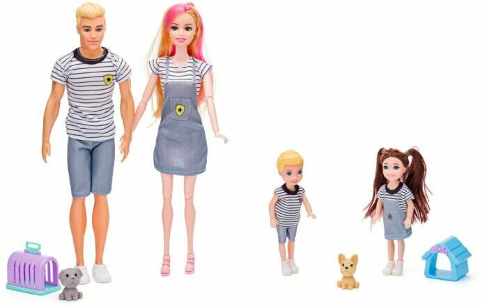 Babacsalád:Négy fős család két kutyussal akik beköltözhetnek a babházakba. Szülők és gyerekek, két aranyos kiskutyával. A babák karja és lába drótból készült, ezért mozgatható. A babák tudnak ülni, integetni és térdelni. Ez a szett a Barbie babaházakban jól használható. A felnőtt babák magassága: 30 cm. Darabszám 8 db Életkor: 3+ A Woodyland Csehország legsikere