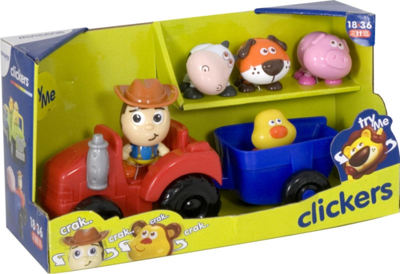 Az első találkozás a szerepjátékkal. Fantázia-és nyelvi fejlesztő játék, különféle karakterekkel, állatokkal (sofőr, boci, kutyus, csibe, malac), melyek csörgő-zörgő krack-krack hangot adnak ki és mozgathatók. Kicsiknek megfelelő dizájn és méretek. A baba traktor játék a gyermekek nagy kedvence. A hangot adó állatok és a kalapos farmer láttán rögtön kezdődik a ga