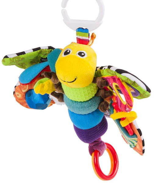 Freddie, a szentjánosbogár fantasztikus szórakozást nyújt a legkisebbeknek. Szárnyai a különböző textúrájú anyagokkal, tarka-barka színeivel hosszú időre lekötik a baba figyelmét, a belevarrt tükör, a csörgő-zörgő anyagok, a katica formájú rágóka és a szárnyak hátuljának fekete-fehér mintái még tovább fokozzák az élményt. Az akasztó segítségével Freddie b