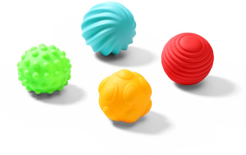 A szenzoros labdák a játék és az oktatási segédeszköz kombinációja. Segítenek fejleszteni a gyermek mozgáskoordinációját valamint serkentik a gyermek érzékszervi fejlődését. A készletben 4 darab labda található. Minden egyes szenzoros játéknak más színe és anyagstruktúrája van. A játék és a kíváncsiság felkeltése mellett masszázsra is használhatók. A gyermek