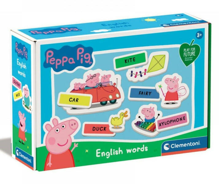 Peppa malac angol oktatójáték Peppa malac most segítséget nyújt az angol tanuláshoz, melyet mókás formában tesz meg. Ebben a szettben ugyanis az angol ABC 26 betűjéhez talál egy-egy formát és azok angol szavait, ezzel mókás formában megtanítva az egyes szavak angol megfelelőit. A kicsik számára biztosan vonzó lesz majd ez a különleges szett, hiszen Peppa malac többször i