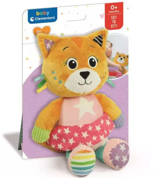 Egy kedves cica, amely nagyon gyorsan válhat a baba elválaszthatatlan barátjává az élet első hónapjaiban! Ez a puha cica különféle anyagokból készül, különböző textúrákkal, hogy stimulálja a baba multiszenzoros fejlődését. A cica praktikus kapoccsal rendelkezik a rágóka vagy cumi felhelyezéséhez, hogy azt mindenhová magával vihesse. A meglepetésdoboz illusztrációkk