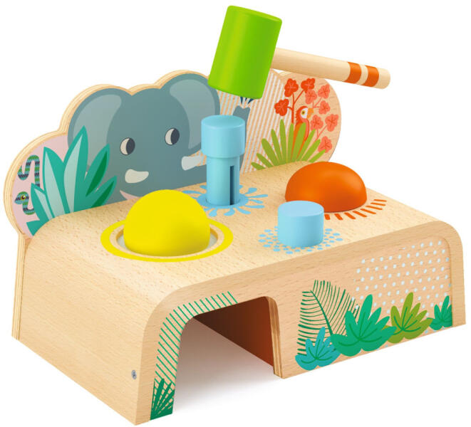 Zenélős kalapálós játék - Bébi játék - Multi Tap - DJ06293Termék Leírás A Zenélős kalapálós játék egy fantasztikus fa játék , amivel a kicsi felfedezheti a kalapálás három különböző módját. Üsd meg a golyót, amely aztán a kapun keresztül gurul ki. Üsd meg a kék hengert, és figyeld, ahogy a másik előbukkan! Végül, üsd meg a gombát, és élvezd a játék han