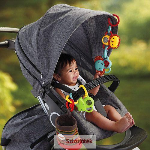 A Fisher-Price Babakocsis játékcsomag (DFP25) egy nagyon praktikus hordozható játék, ami a babakocsira rögzítve menet közben is elszórakoztatja a kicsiket! Az aranyos kis oroszlán, krokodil és elefánt könnyen csatlakoztatható egymáshoz és a babakocsihoz, így mindig elérhető közelségben vannak, ha a kicsi játszani szeretne velük. A kis állatok különféle trükkökkel szór