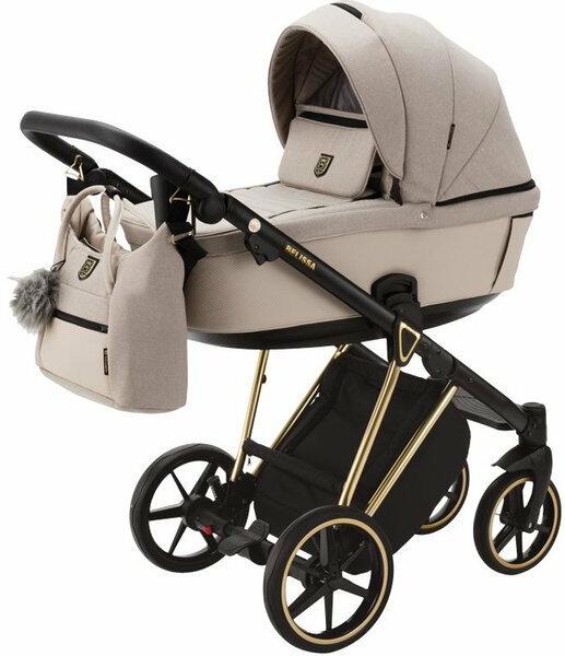 Termék részletekElegáns babakocsi puha anyagokból, gyönyörű arany bevonatos vázzal. A szett tartalmazza a babahordozót, lábzsákot és mózeskosarat, mely megfordítható a vázon. A KIKKA BOO Amaia levehető öko-bőr fogantyúval rendelkezik. 5 pontos övrendszer puha pánttal. Széles alsó kosár. Kiváló minőségű defektmentes kerekek. Az első kerekek 360 fokban forgathatók, amelyek szintén lev