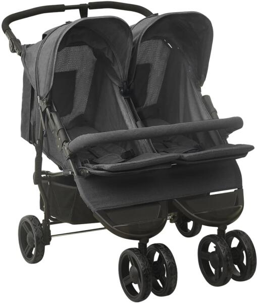 Termék részletekvidaXL antracitszürke acél ikerbabakocsi Ezzel a kényelmes ikerbabakocsival elviheti babáit sétálni a parkba, vásárolni stb. Az ikerbabakocsi acél vázzal rendelkezik, így masszív és tartós. A háttámla és a lábtámasz több pozícióba állítható, így maximális kényelmet biztosít gyermekei számára. A kerek tető megbízhatóan védi őket a közvetlen napfénytől. Emellet
