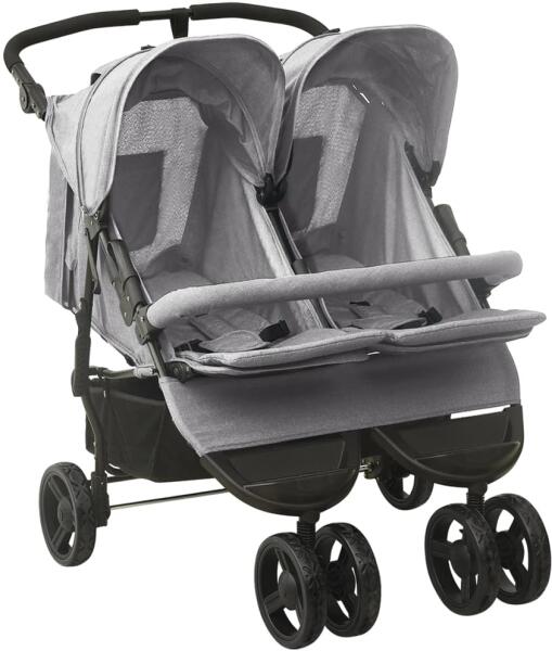Termék részletekvidaXL világosszürke acél ikerbabakocsi Ezzel a kényelmes ikerbabakocsival elviheti babáit sétálni a parkba, vásárolni stb. Az ikerbabakocsi acél vázzal rendelkezik, így masszív és tartós. A háttámla és a lábtámasz több pozícióba állítható, így maximális kényelmet biztosít gyermekei számára. A kerek tető megbízhatóan védi őket a közvetlen napfénytől. Emellet