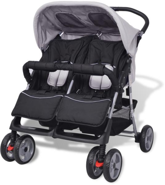 vidaXL szürke és fekete acél ikerbabakocsi Ez a kényelmes ikerbabakocsi tökéletes megoldás, ha el szeretné vinni gyermekeit egy sétára. Acél szerkezetű, így ez a babakocsi nagyon tartós, erős és sokoldalú. Ezt a kényelmes babakocsit egy lehajtható napellenzővel szerelték fel, amely védelmet nyújt a napfény és az UV-sugárzás ellen. A háttámla 3 helyzetbe állítható,