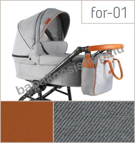 Adbor Forte 3:1 multifunkciós babakocsi A babakocsi jellemzői: Váz: - masszív vázszerkezet - lapra csukódik - nagyméretű kerekek, melyek lengéscsillapító felfüggesztéssel vannak ellátva és masszív küllőkkel - első kerekei bolygósíthatóak-fixálhatóak - modern és biztonságos hátsó fék egyidejű blokkolhatósággal - rendkívül könnyen tolható és kezelhető - az ergon