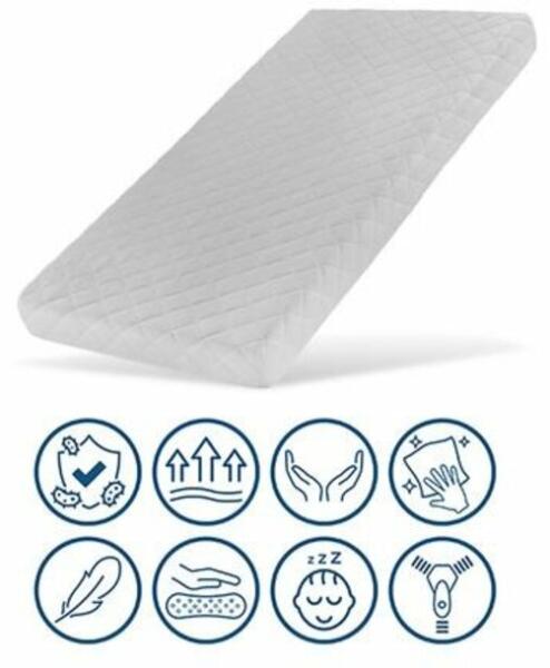 Tökéletesen megtámasztja a gerincet, így megakadályozza az esetleges gerincbántalmak kialakulását. Kókusz és hab matrac, amely tökéletes választás a picinek. 5 érv a kókuszmatrac mellett: 1, Klinikai tesztelés bizonyítja, hogy a rugalmas kókuszfilc stabil szerkezeténél fogva tökéletesen támasztja meg a hátgerincet, ezáltal megakadályozza a gyerekkorban kialakuló gerincb