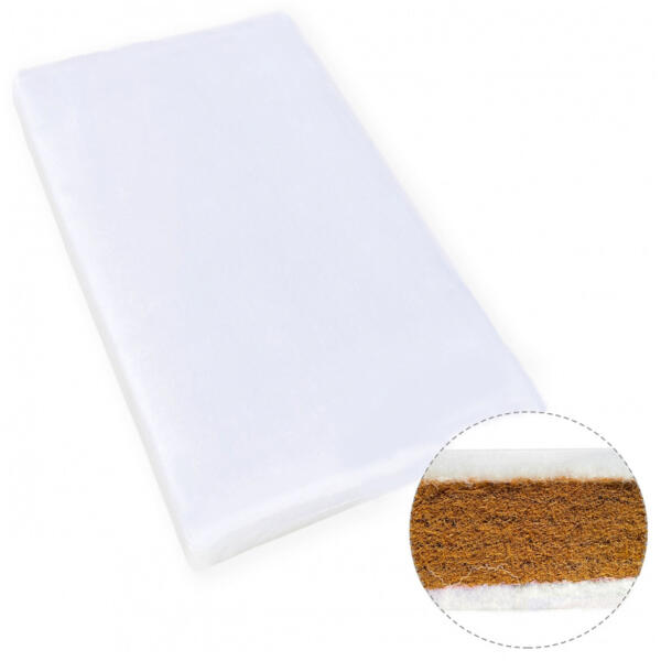 KÓKUSZ - HAB - KÓKUSZMATRAC 60x172 (10 cm-es) A kiságy elengedhetetlen kelléke a kókuszmatrac! A Kókusz-hab-kókusz matrac úgynevezett szendvics szerkezetű matrac Kókuszmatracaink új köntösbe kerültek azáltal, hogy kókuszrostok szálai latexet tartalmazó növényi nedvvel vannak átitatva, ami által rugalmasabb, jobb légáteresztő funkciót biztosítanak használóik számára.