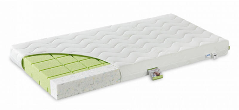 A cseh New Baby márka kétoldalas gyermekmatraca visco memóriahabból és T-1830-as poliuretánhabból készült, fokozott szilárdsággal, így a matrac magja még hosszan tartó terhelés esetén sem deformálódik, és így garantálja a kényelmes alvást. A matrac mindkét oldala különböző keménységű és tulajdonságú, így a matrac különböző korú gyermekek számára is alkalma