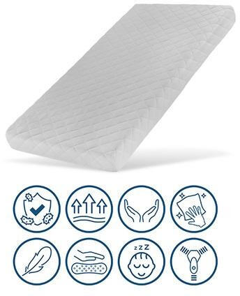 Komfort Line 120×60× cm gyermekmatrac kétoldalas matrac két független rétegből áll: A matrac huzata (100% poliészter). Az anyag megfelel az OEKO-TEX® 100-as szabványnak Poliuretán hab T1830, amelyet a Maxfoam folyamatos módszerrel állítanak elő. A matrac alapja a magas szilárdságú és jó légáteresztő képességű poliuretán hab. kétoldalas matrac, amely a következőkből