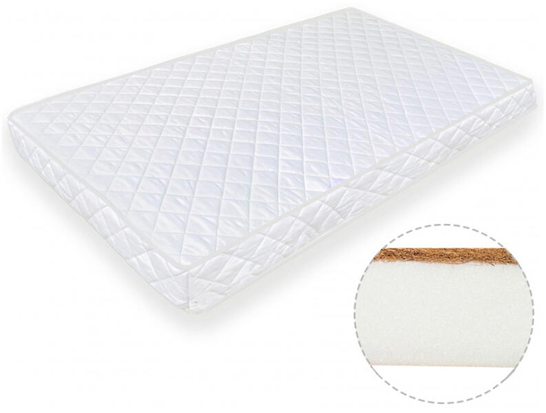 Baba matrac New Baby, kiváló ortopédiai és antiallergiás tulajdonságokkal rendelkezik, köszönhetően a poliuretán hab és a kókuszrost rétegeinek kombinációjának. A kókuszréteg lehetővé teszi a levegő keringését, ami azt jelenti, hogy a matrac tökéletesen eltávolítja a nedvességet. Az antiallergiás poliuretán hab rugalmas, ellenáll a hosszú távú stressz okozta káro